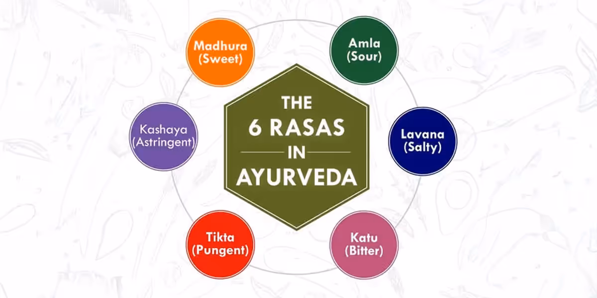 According to Ayurveda, the taste of a substance has a special physical, metabolic and mental effect on the body. The dominance of specific elements in the rasas imparts different qualities to them. For example, on the physical plane, Madura rasa nourishes the body and eliminates the effect of vata (leanness of the body) and pitta (hunger/ inflammation in the body)