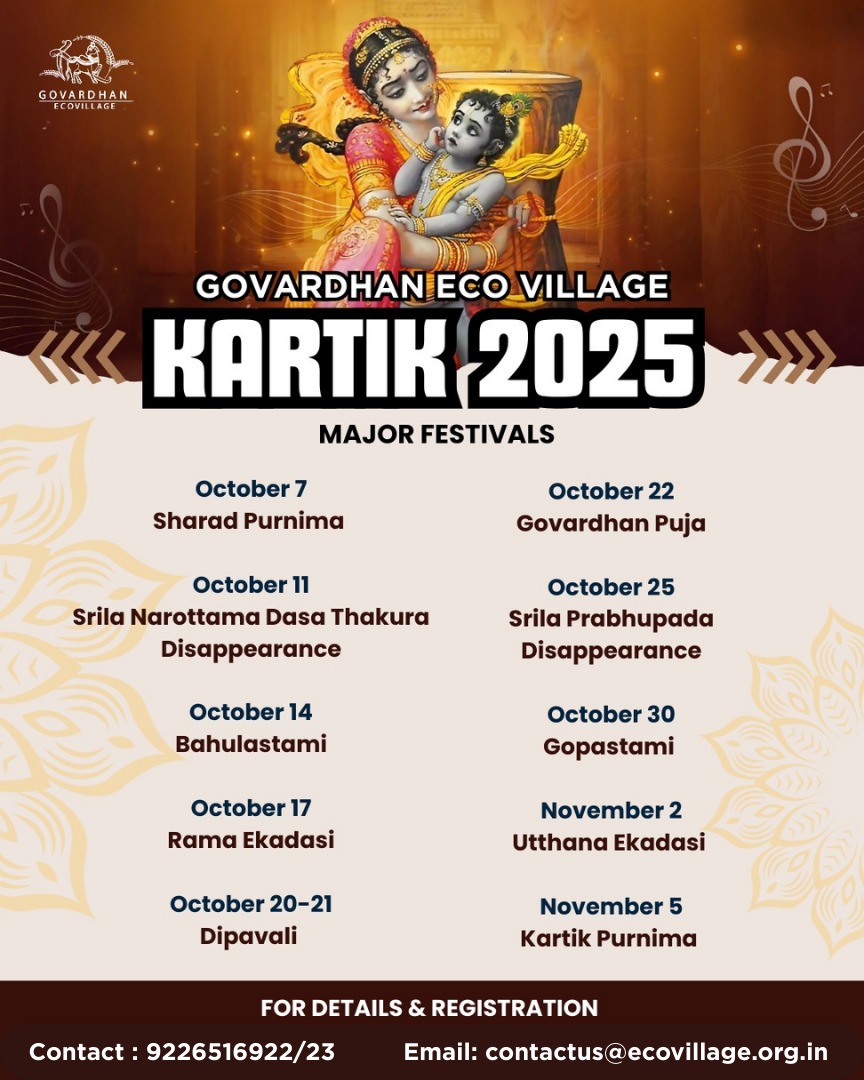A Day-Long Cultural & Spiritual program at Govardhan Eco Village. Come visit us for a day long excursion in our internationally acclaimed eco-destination and experience the wisdom of the Bhagavad Gita.