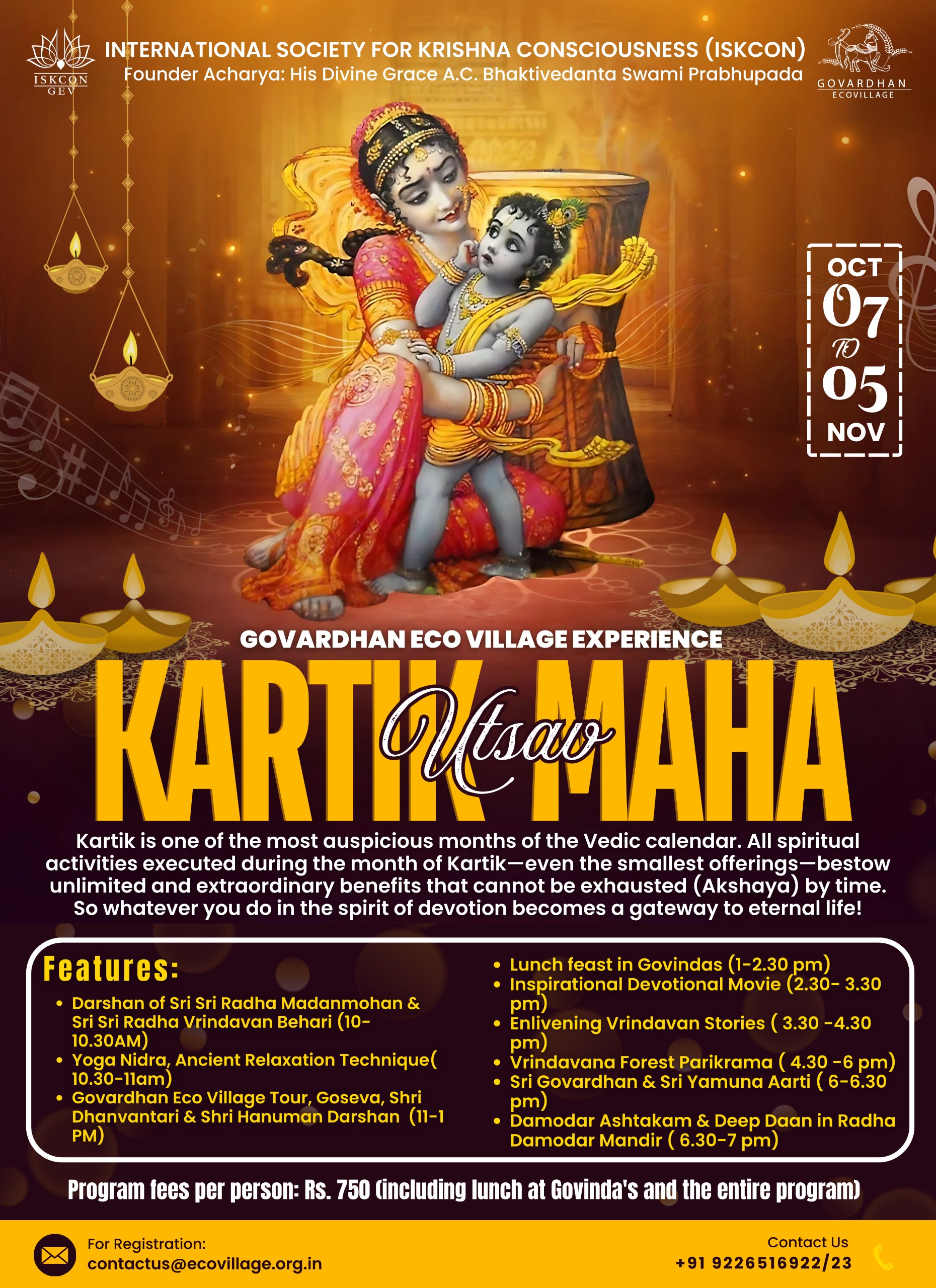Program fees per person: ₹ 750 (including Lunch Prasad and the Entire Program)